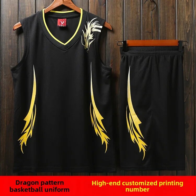 Купить Баскетбольная форма, с рисунком дракона, мужская, женская, дышащая, черная, размер L