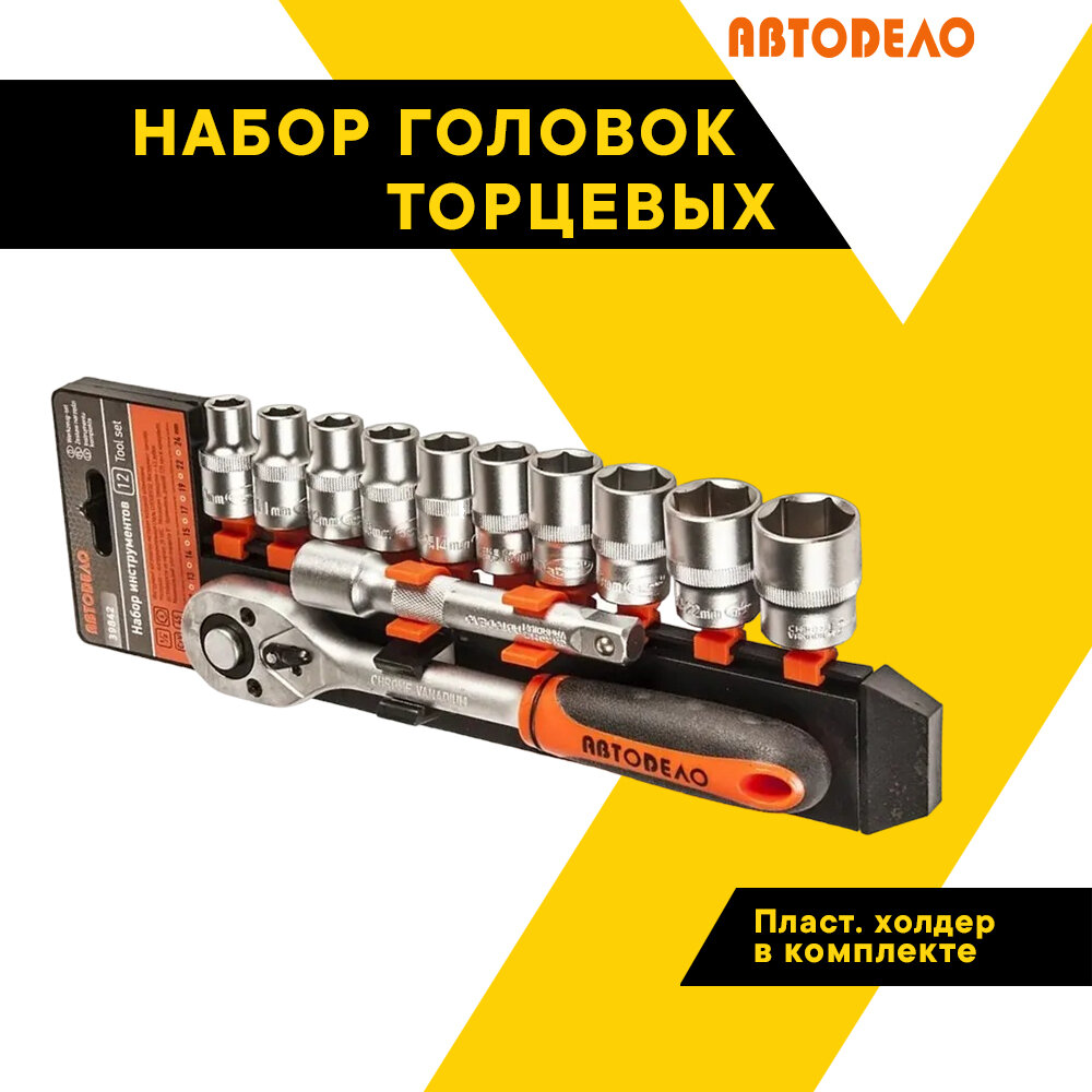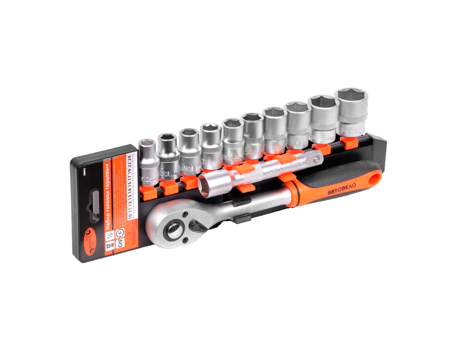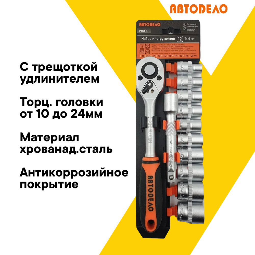 Набор торцевых головок Автодело с трещоткой, под размер 1/2", комплект 12 предметов, арт. 39842