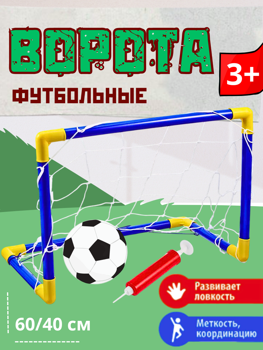 Детские футбольные ворота , мини-футбол, ворота, сетка, мяч, насос интересное: