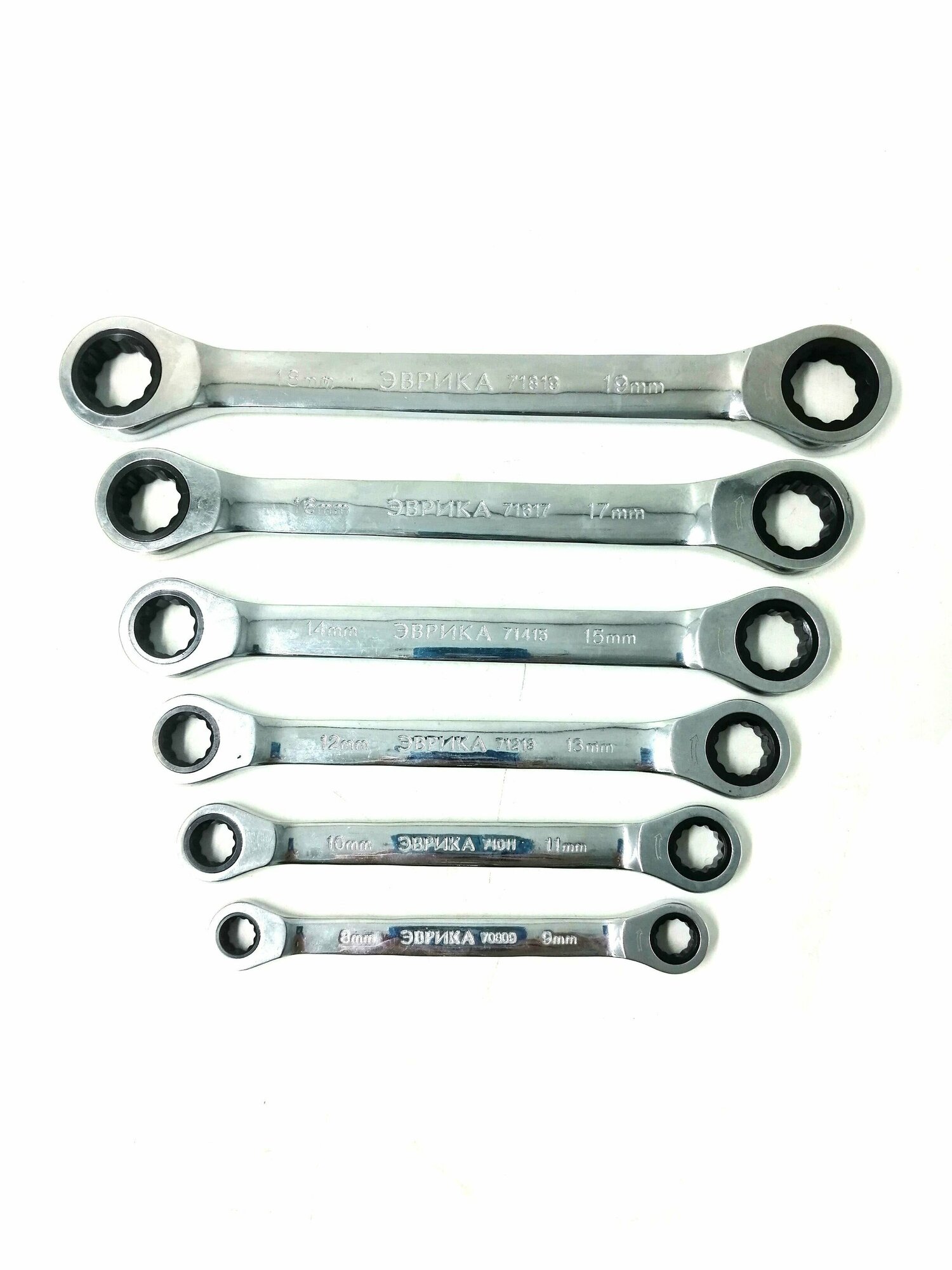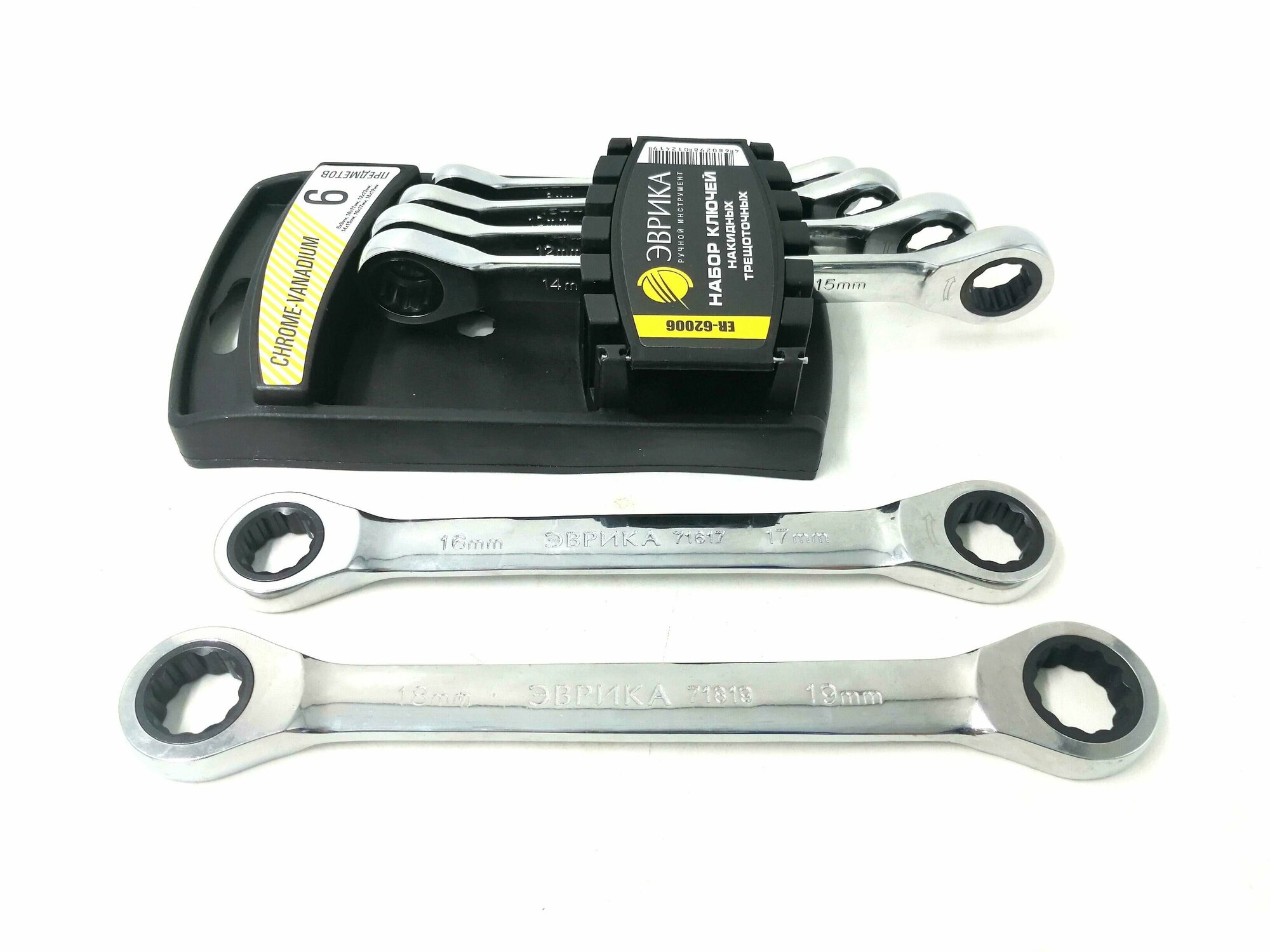Набор ключей накидных трещоточных 6 предметов 8x9, 10x11, 12x13, 14x15, 16x17, 18x19 (на держателе) эврика