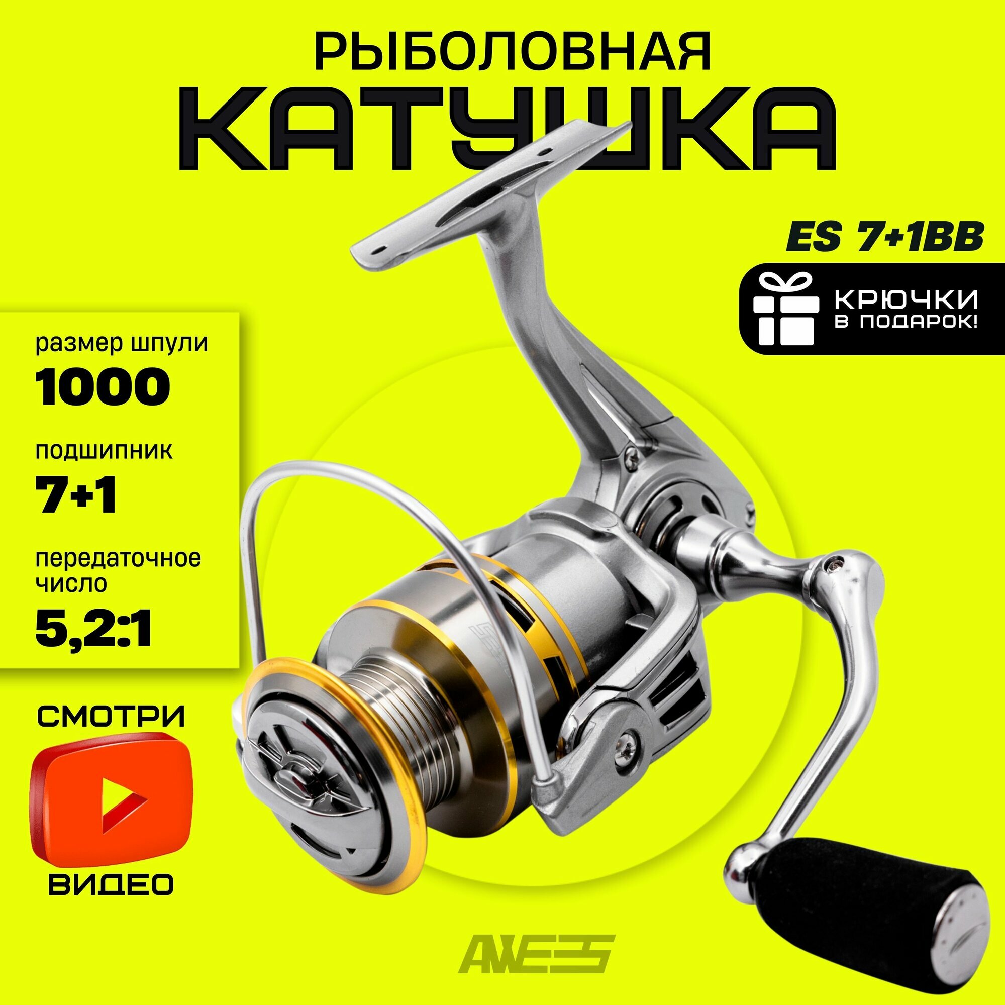 Катушка рыболовная для спиннинга, фидера, удилища AWEES ES 7+1BB 1000 интересное: