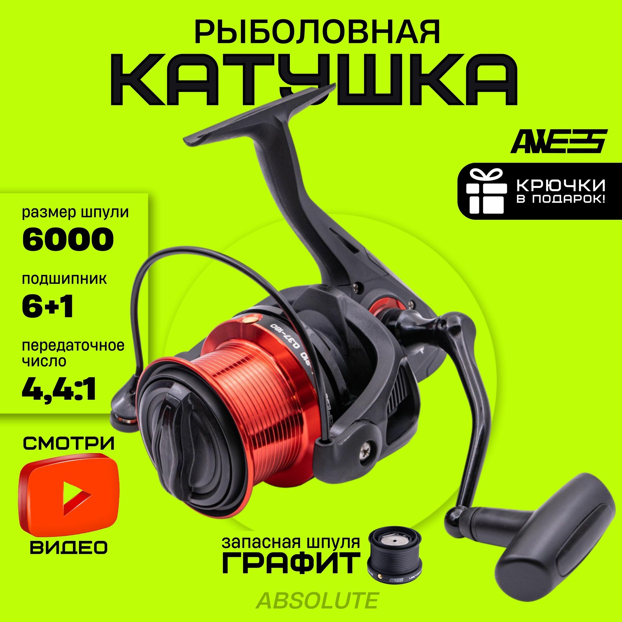 Катушка рыболовная для спиннинга, фидера, удилища AWEES Absolute 5+1 BB 6000 интересное: