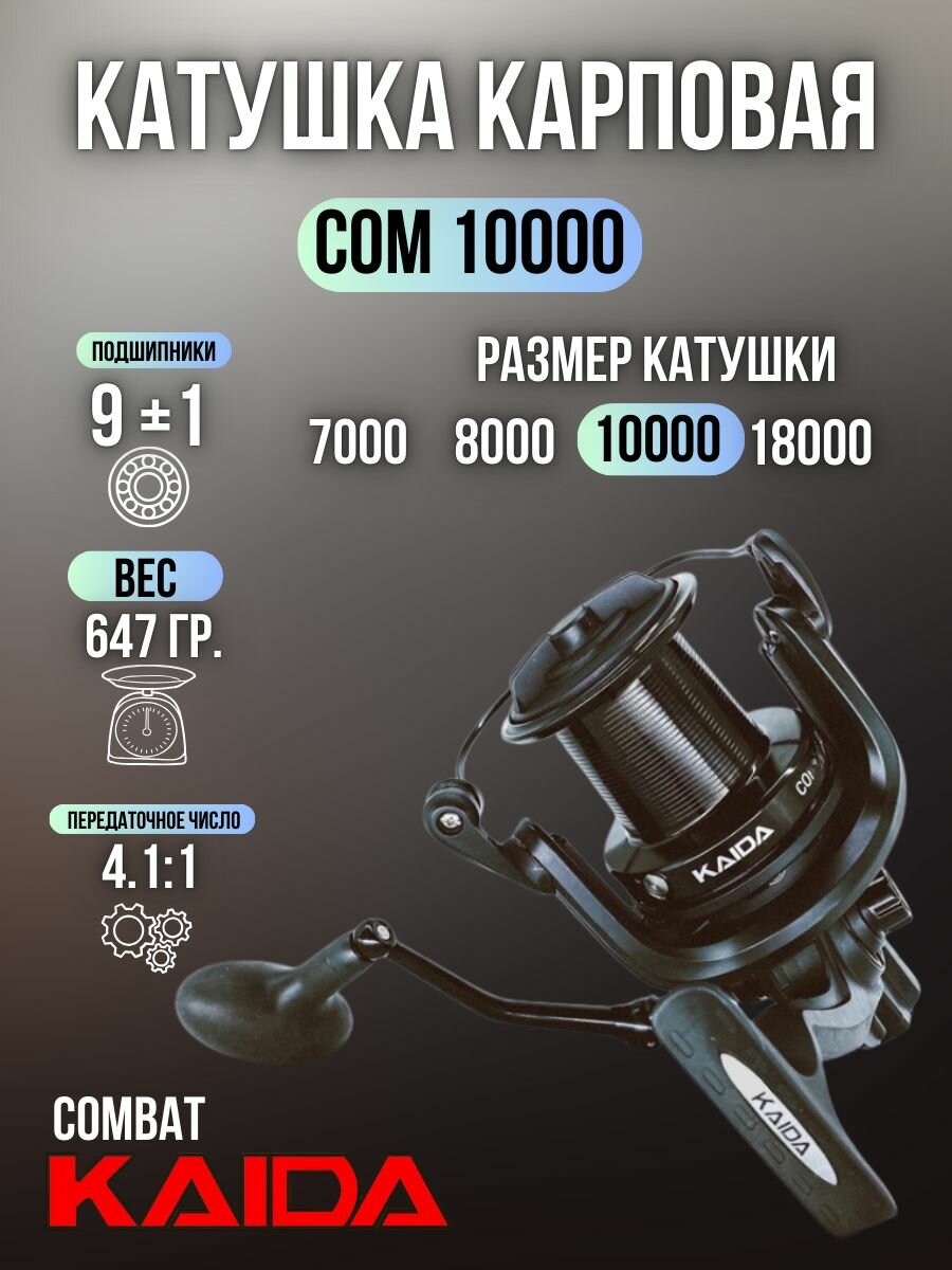Катушка карповая с передним фрикционом Kaida COMBAT COM10000C (9+1) подшипник интересное: