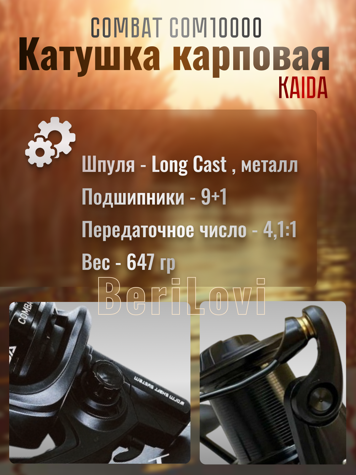 Катушка рыболовная карповая силовая KAIDA COMBAT 10000 (9+1)BB интересное:
