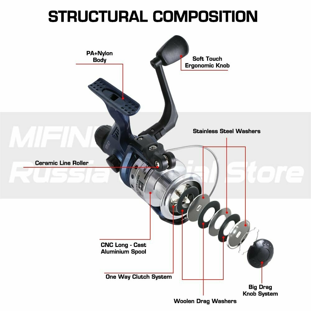 Катушка рыболовная Mifine DARKAR 2000F (4 подшипника) новинка 2022 года / Для спиннинга / Безынерционная / Для фидера / Ловля щуки
