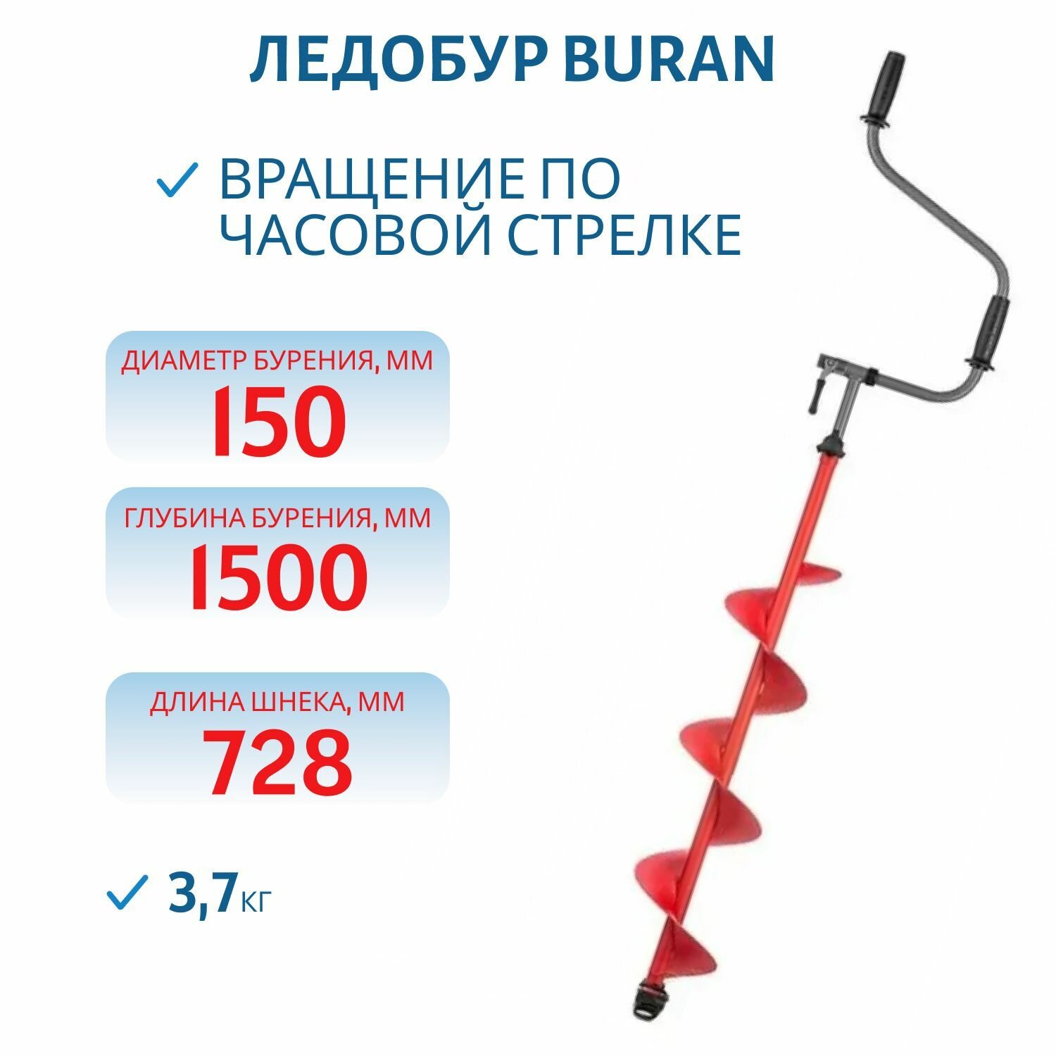 Ниже Вы можете прочитать отзывы на Ледобур BURAN 150R правое вращение, цельнотянутый шнек Тонар, ознакомится с подробными характеристиками, посмотреть интересные обзоры и фотографии на Ледобур BURAN 150R правое вращение, цельнотянутый шнек Тонар.