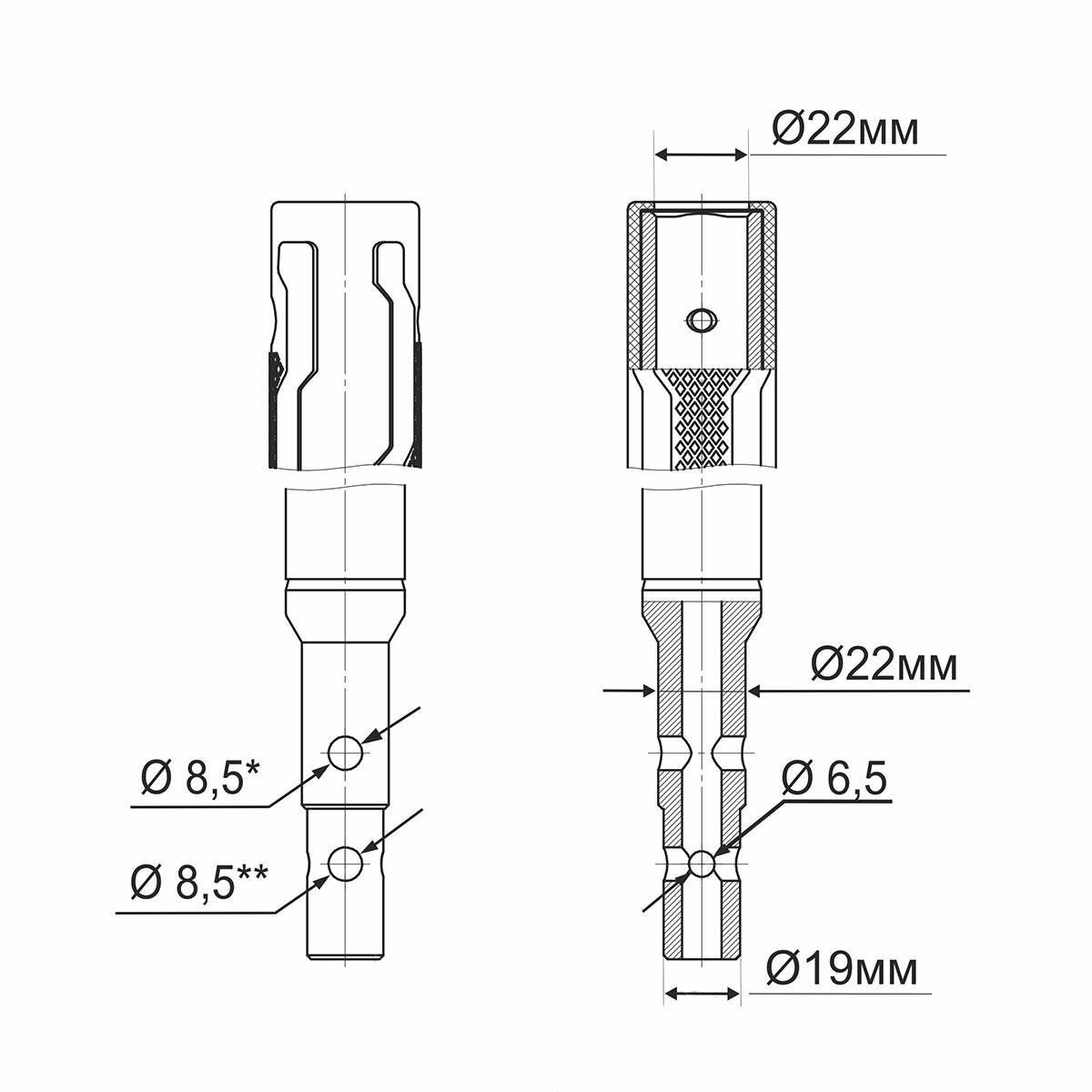 Адаптер ледобура под шуруповерт 20 мм с фиксацией шуруповерта