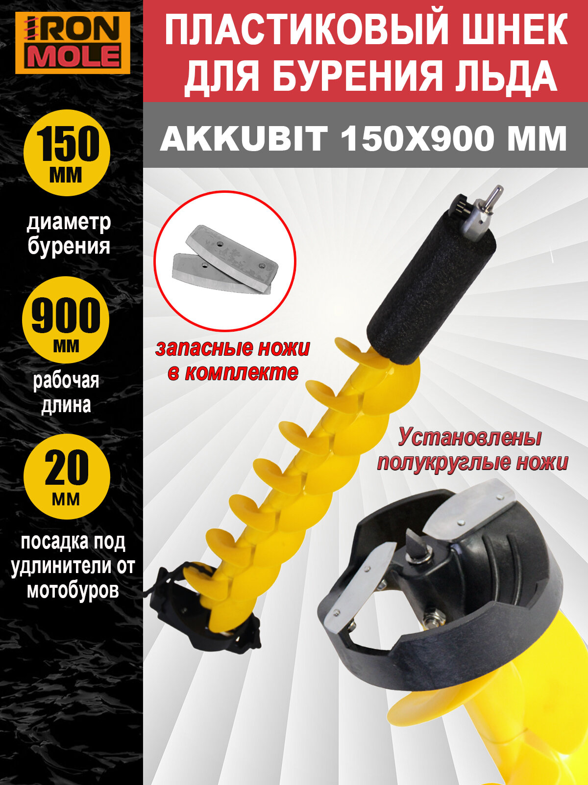 Пластиковый шнек для шуруповерта, Akkubit 150X900 мм, ледобур для зимней рыбалки интересное: