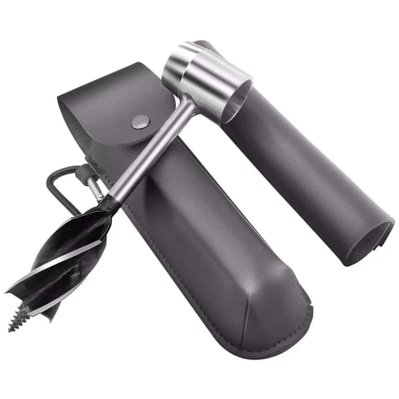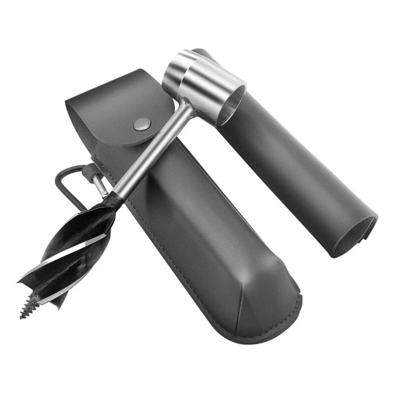 Шнек для кемпинга, ручной, с четырьмя лезвиями, черный кожаный чехол, серебряное сверло