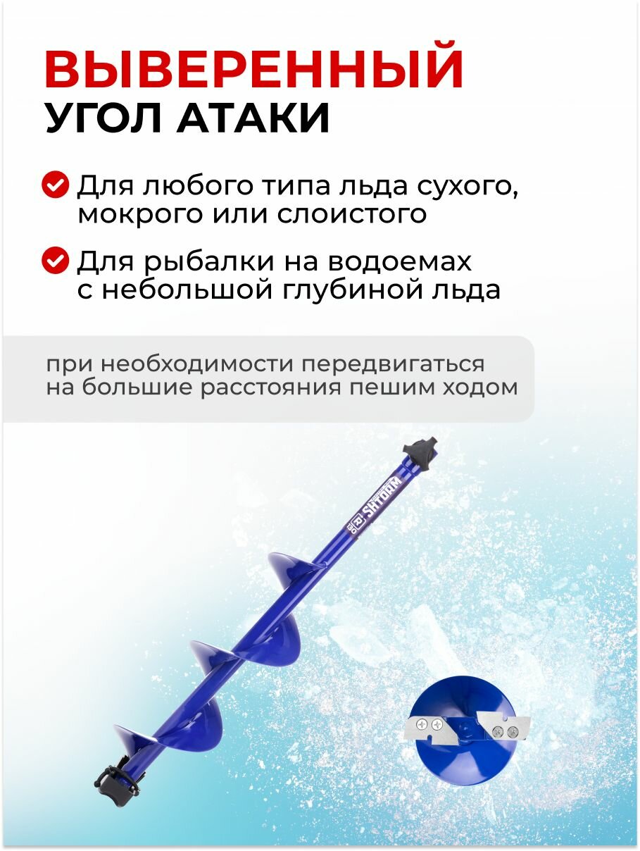 Шнек ледобура 100 мм под шуруповерт с адаптером, правого вращения, для зимней рыбалки, пр-во Патриот с ножами Тонар
