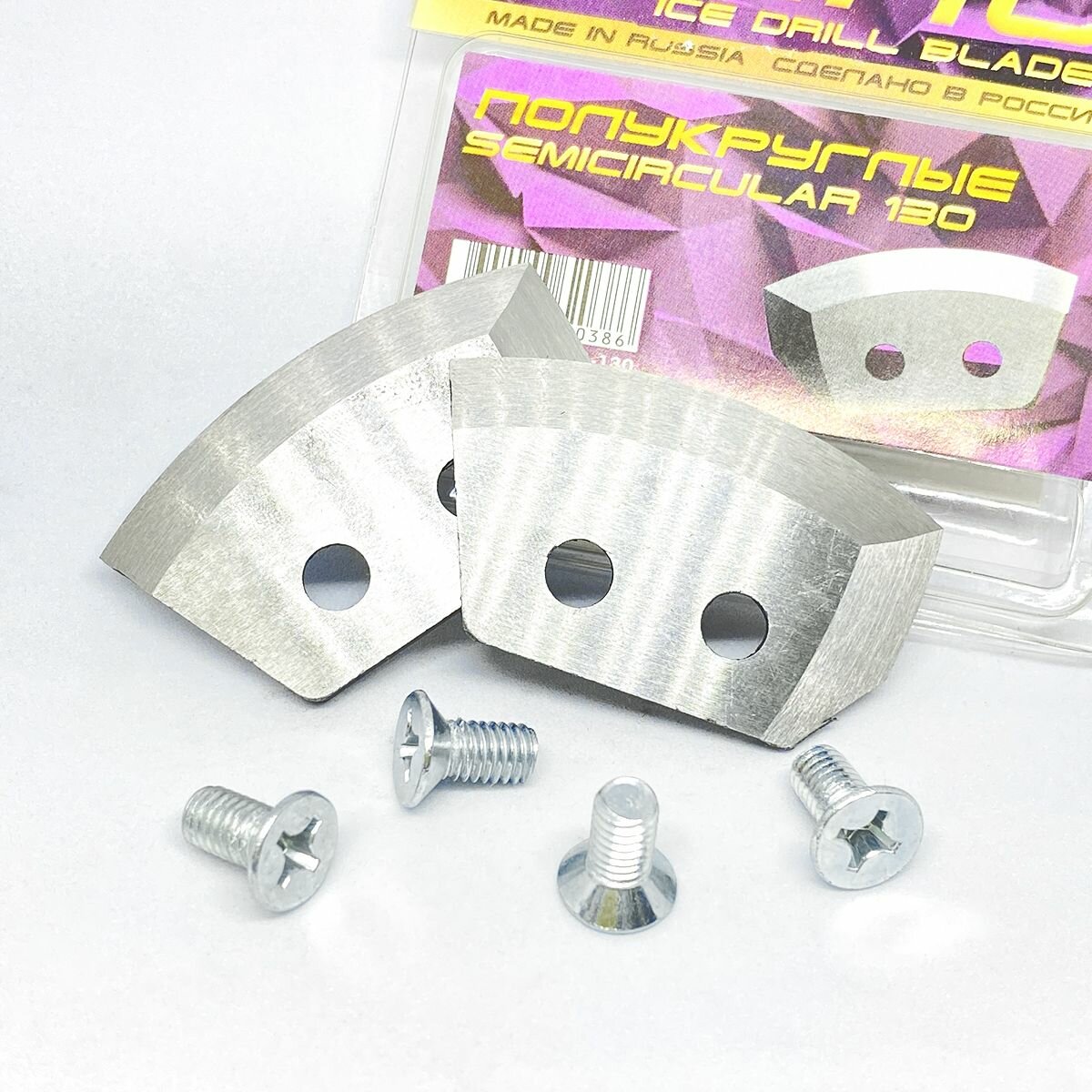 Ножи для шнека и ледобура НЕРО-130H(R) полукруглые / набор 2 комплекта, правое вращение, нержавеющая сталь