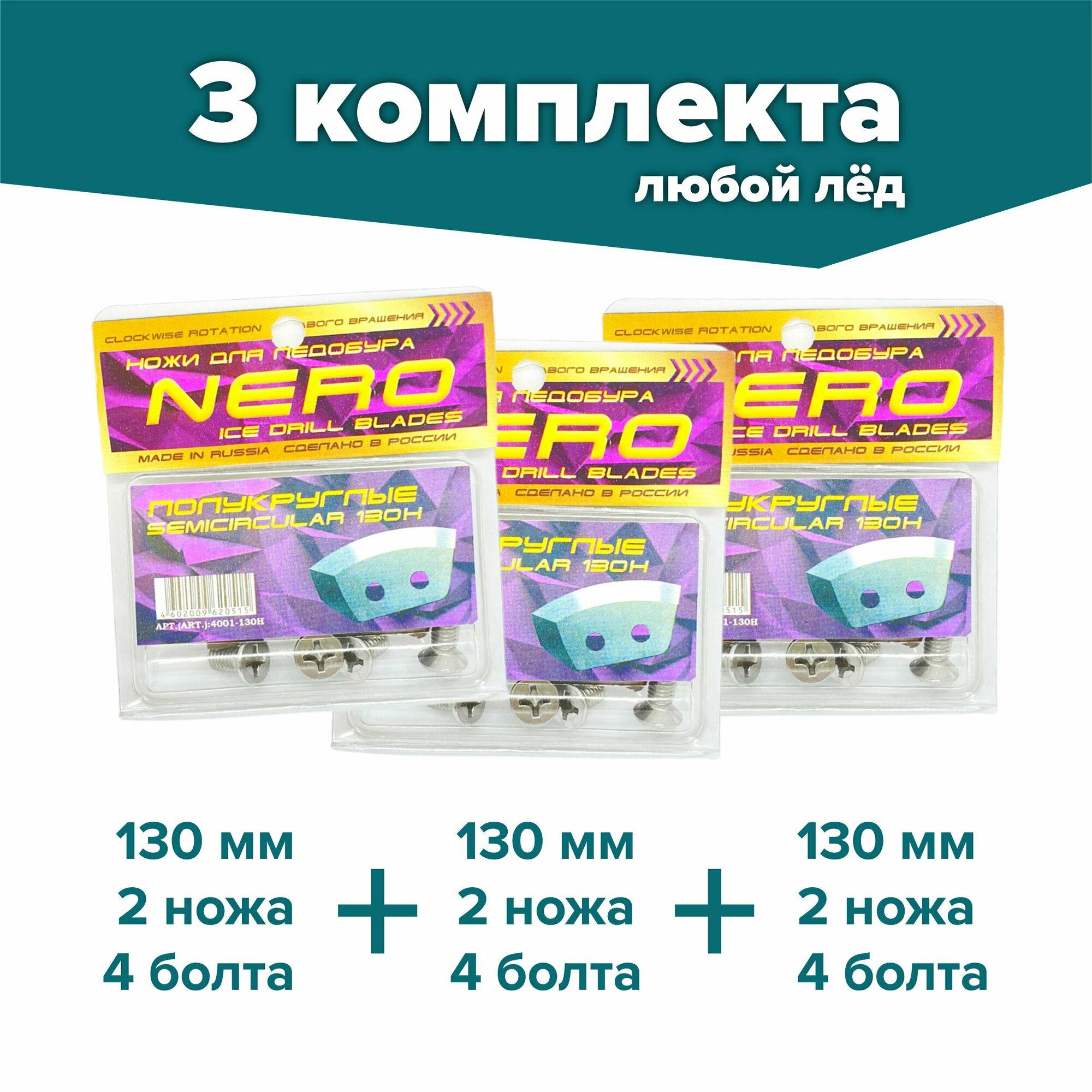 СохранитьНожи для шнека и ледобура НЕРО-130H(R) полукруглые / набор 3 комплекта, правое вращение, нержавеющая сталь интересное: