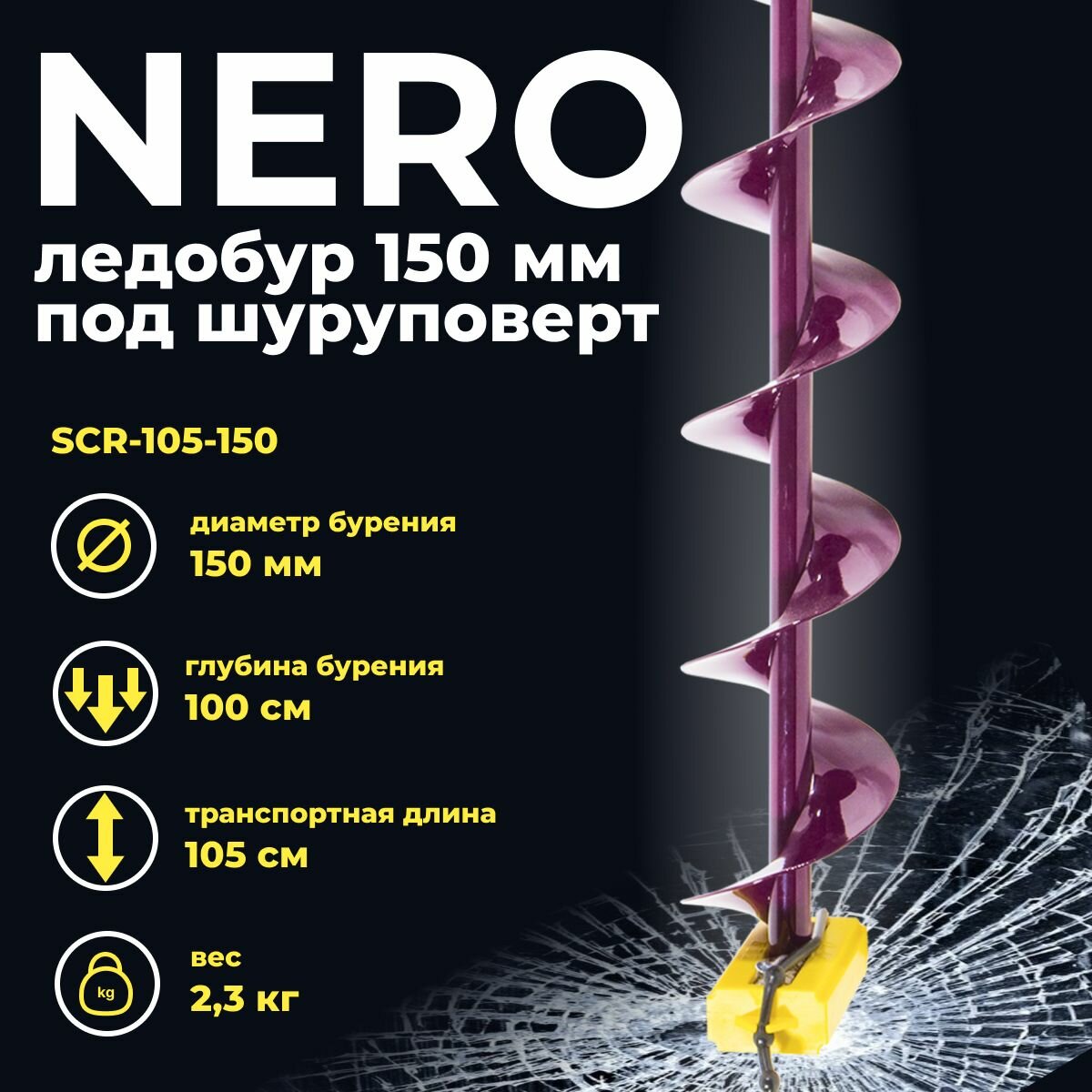 Бур для рыбалки зимний "NERO" 130 мм правого вращения