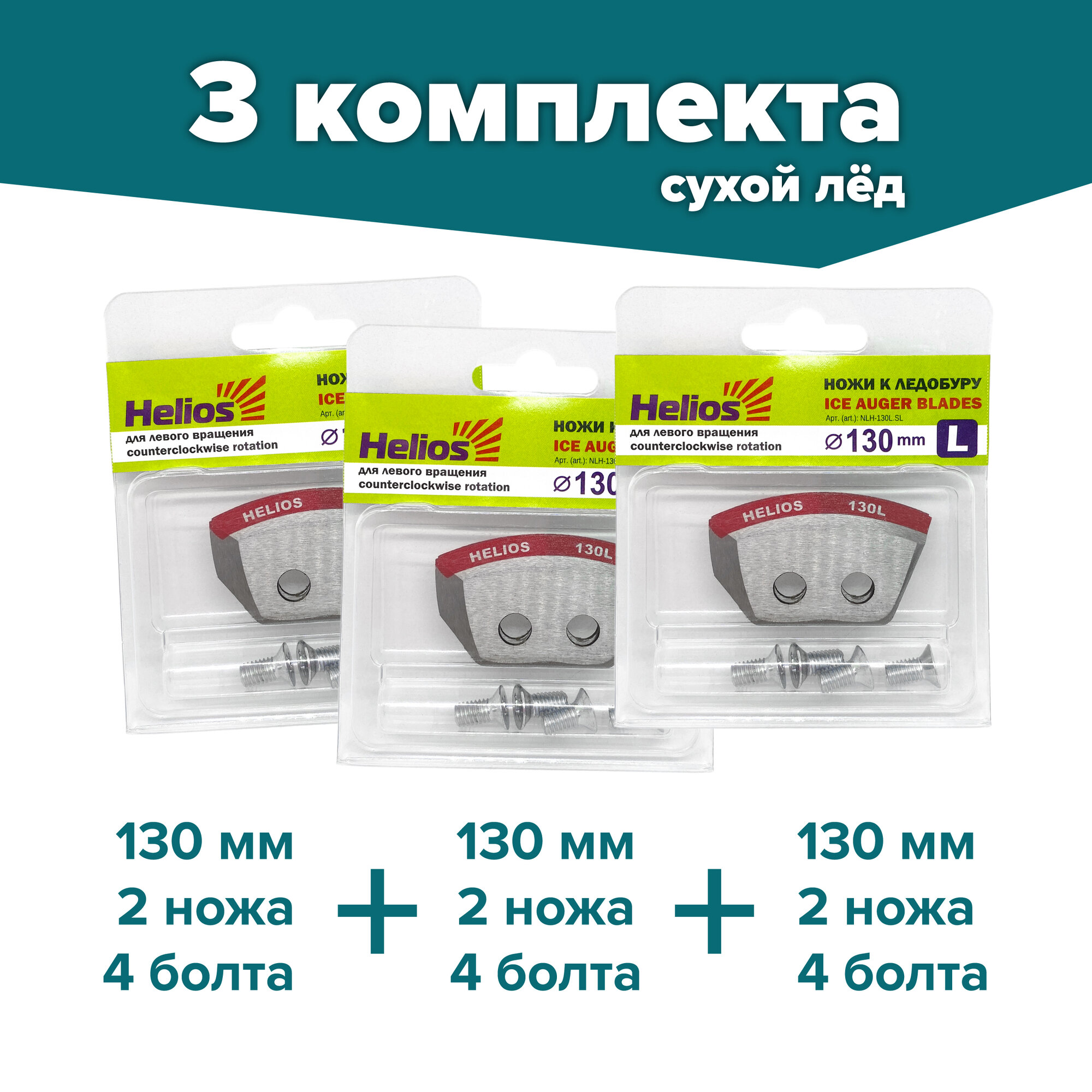 СохранитьНожи для шнека и ледобура HELIOS-130(L), левое вращение, сухой лед / набор 3 комплекта интересное: