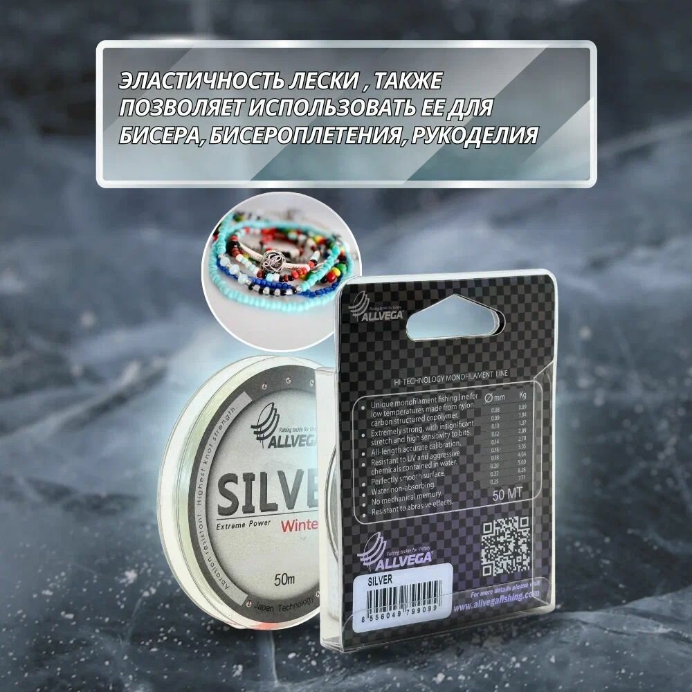 Леска монофильная для рыбалки ALLVEGA "Silver" 50м 0,08мм (0,89кг) серебристая интересное: