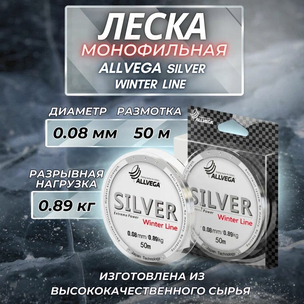 Купить Леска монофильная для рыбалки ALLVEGA "Silver" 50м 0,08мм (0,89кг) серебристая