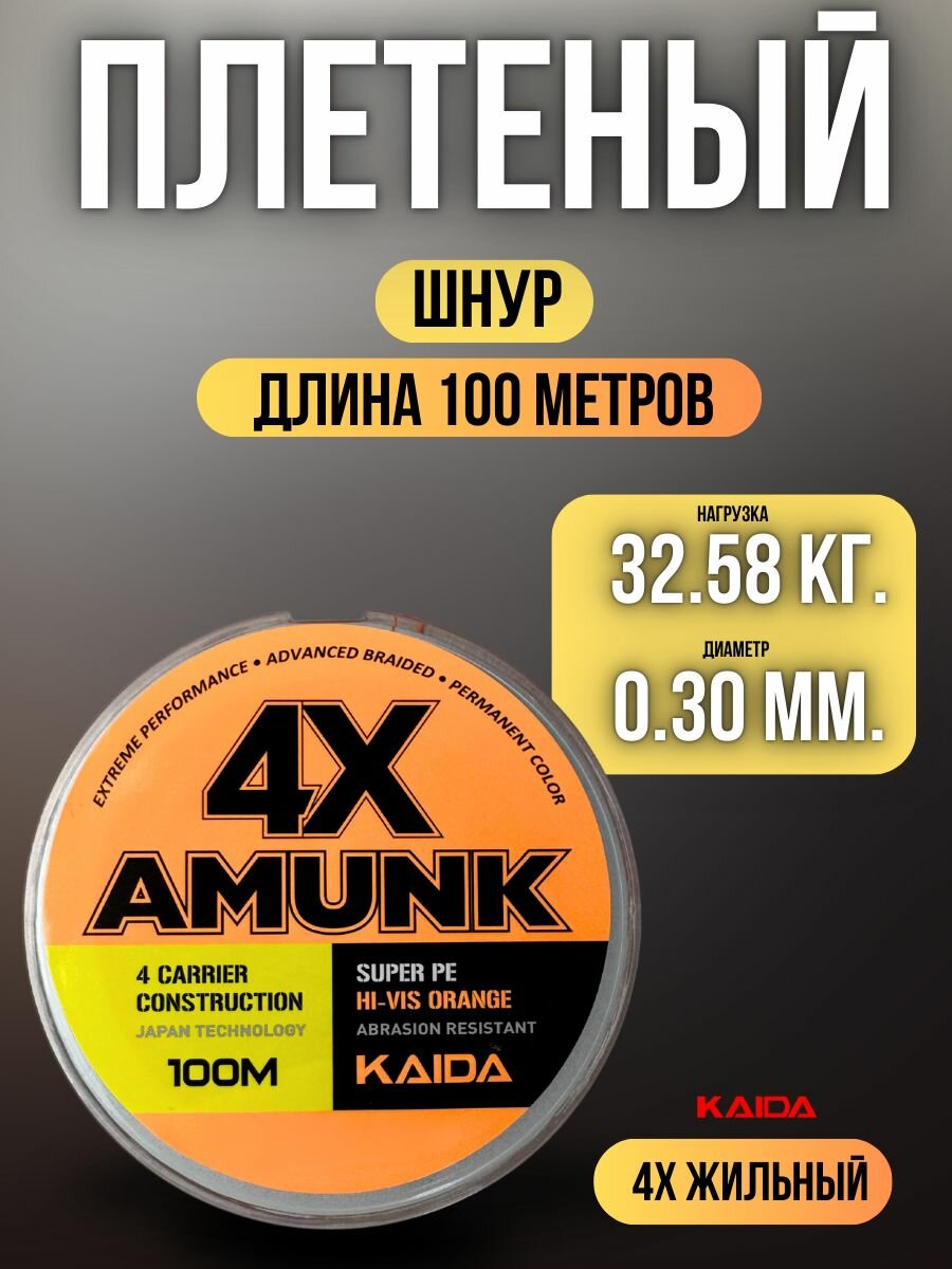 Купить Плетеный шнур для рыбалки / леска плетенка для спиннинга и фидера Kaida 4X Amunk 100 м 0,30 мм оранжевый