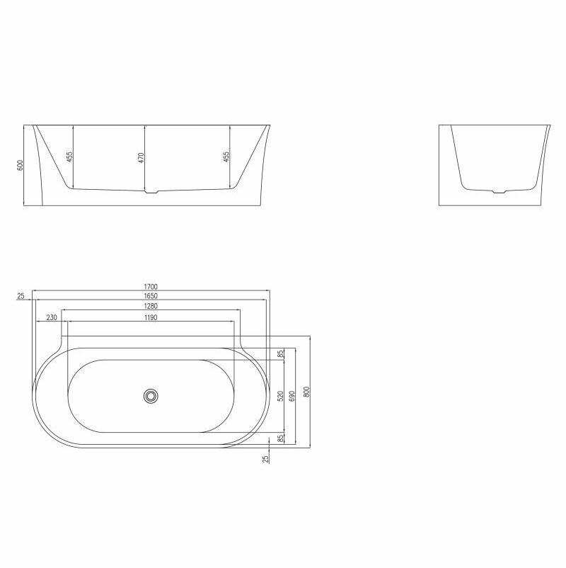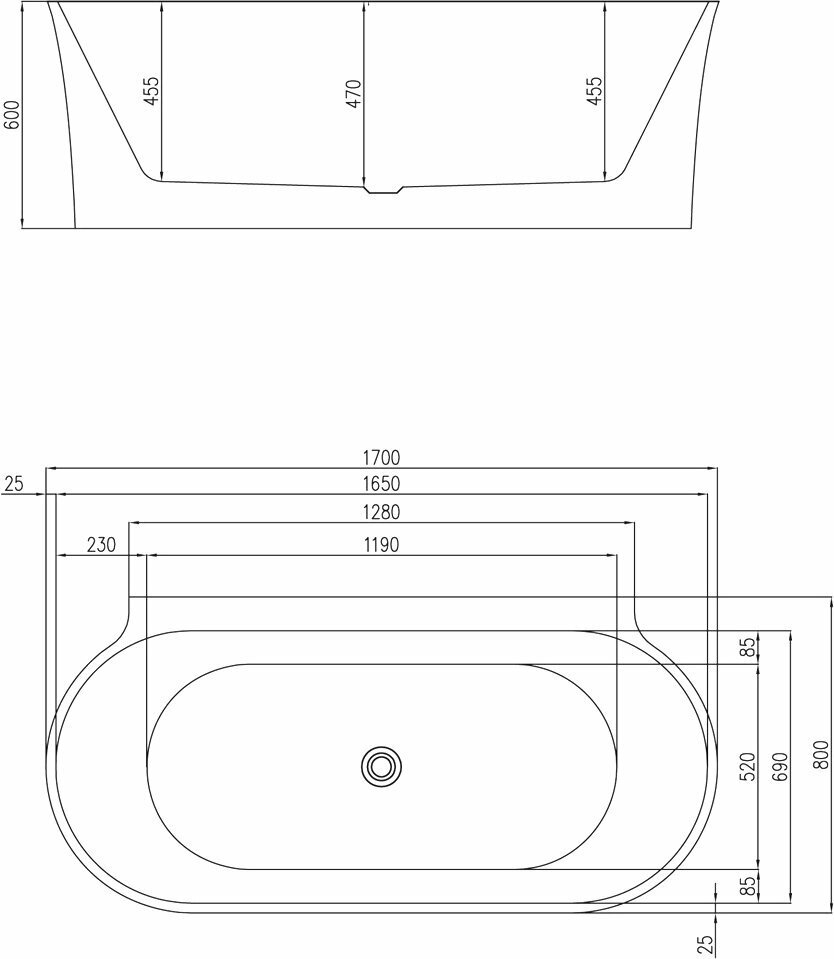 Пристенная, овальная акриловая ванна в комплекте со сливом-переливом BelBagno BB409-1700-800