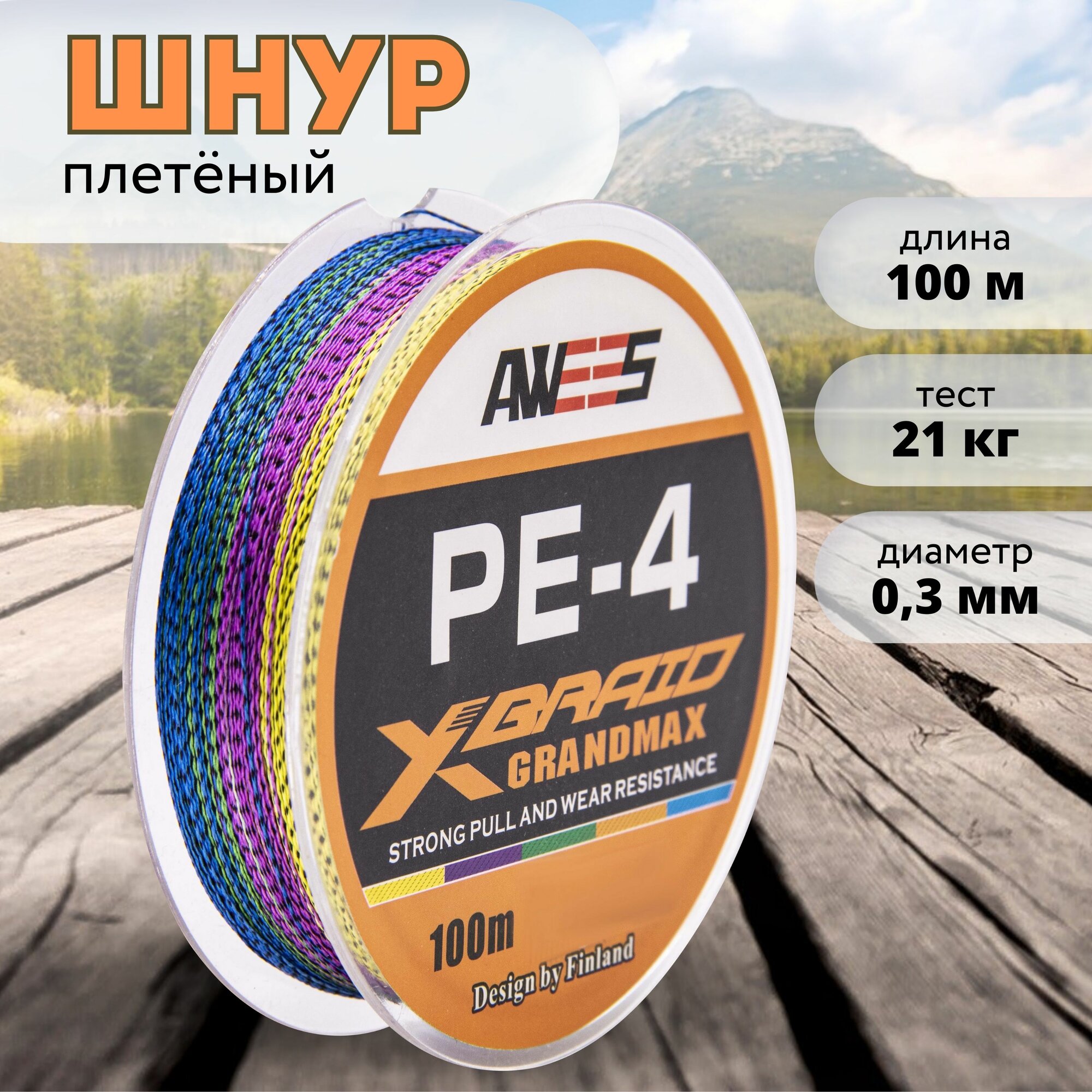 Купить Плетеный шнур 4-жильный AWEES PE-4 0.30, тест 21 кг, 100 м, колор микс/плетёнка/леска плетеная/леска/шнур для рыбалки