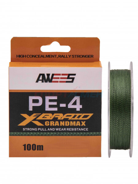 Плетеный шнур 4-жильный AWEES PE-4 0.12, тест 6.4 кг, 100 м