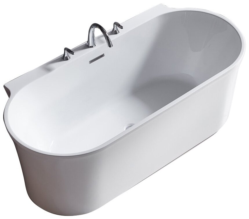 Пристенная, овальная акриловая ванна в комплекте со сливом-переливом BelBagno BB409-1700-800