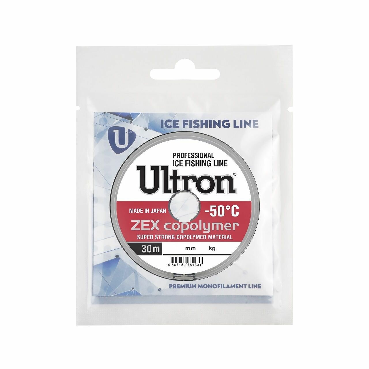 Монофильная леска для рыбалки ULTRON Zex Copolymer 0,18 мм, 4,0 кг, 30 м, прозрачная, 1 штука