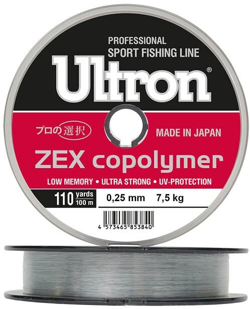 Леска ULTRON Zex Copolymer 0,25 мм, 100 м, 7,5 кг, прозрачная