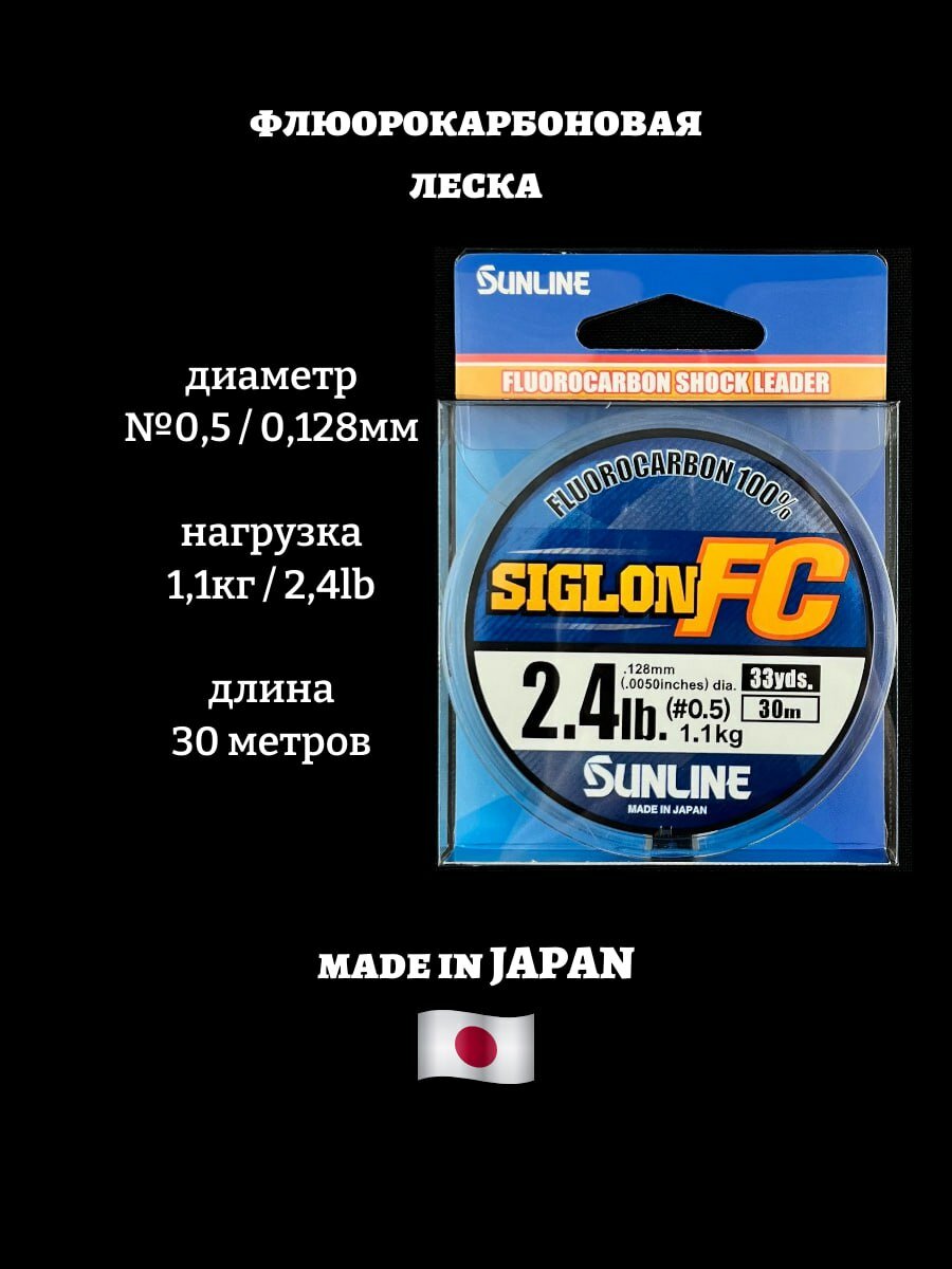 Купить SIG-FC 0.128 mm 30m #0.5 Флюорокарбон Sunline 1,1кг 2,4lb поводковый, бесцветная леска