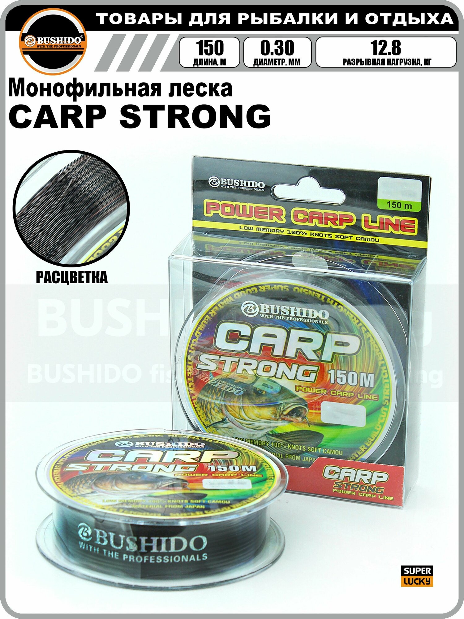 Купить Леска рыболовная BUSHIDO CARP STRONG power carp line (150м); (d - 0,3мм); (тест - 12,8кг)