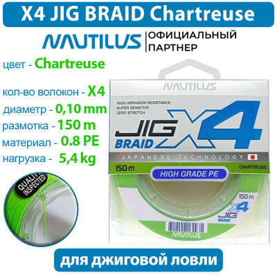 Купить Шнур Nautilus X4 Jig Braid Chartreuse d-0.10мм 5.4кг 0,8PE 150м
