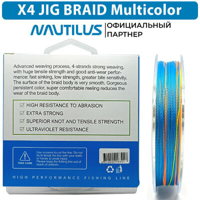 СохранитьШнур Nautilus X4 Jig Braid Multicolour d-0.26мм 22.6кг 4,0PE 150м интересное: