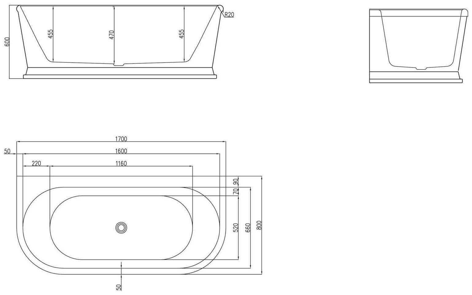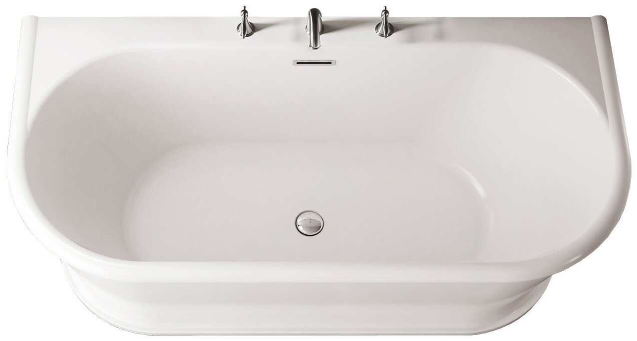 Пристенная, овальная акриловая ванна в комплекте со сливом-переливом BelBagno BB408-1700-800