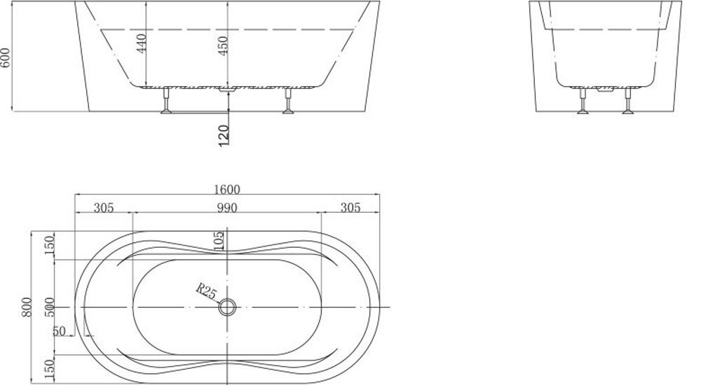 Ванна отдельностоящая BelBagno BB407-1600-800 акрил
