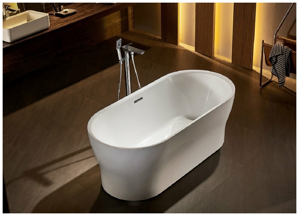 Отдельностоящая овальная акриловая ванна в комплекте со сливом-переливом BelBagno BB405-1700-800