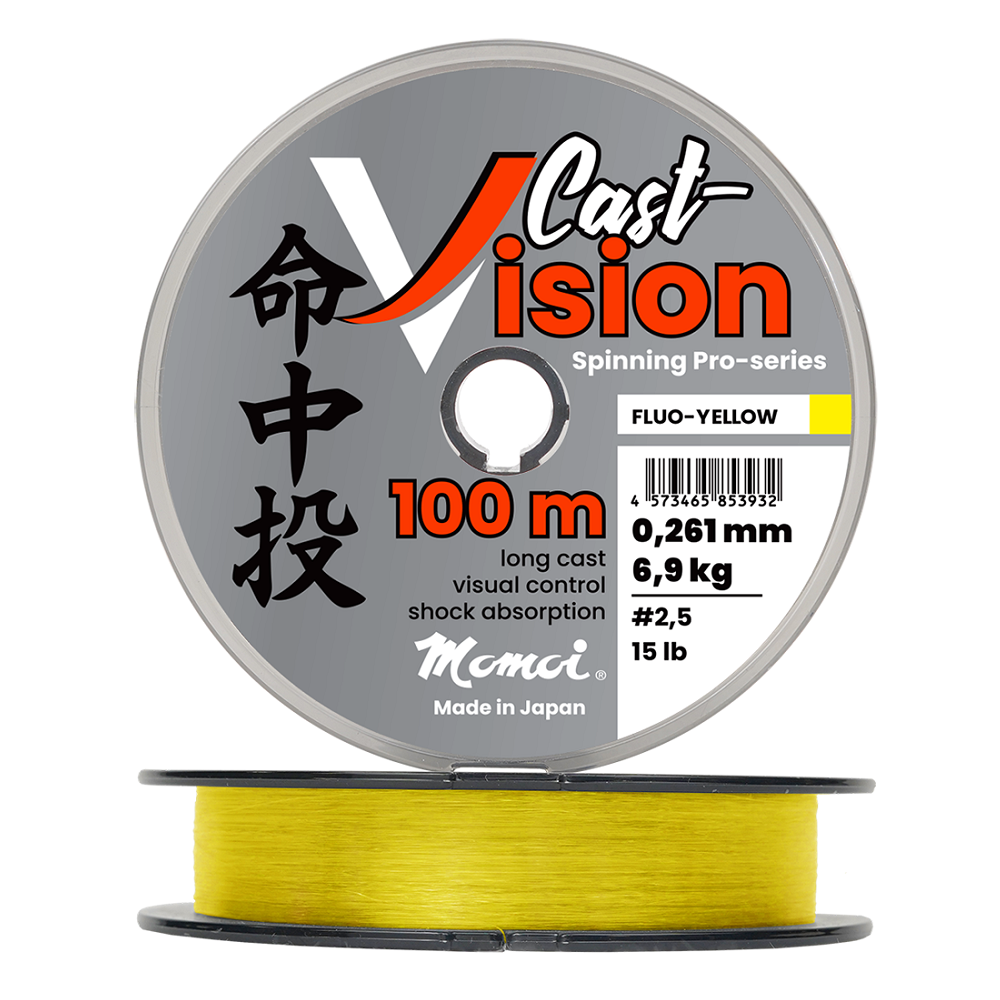 Монофильная леска для рыбалки Momoi Cast Vision 0,261 мм, 6,9 кг, 100 м, флуоресцентно-желтая, 1 штука
