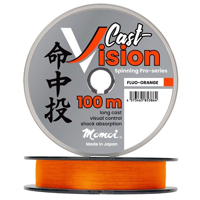 Монофильная леска для рыбалки Momoi Cast Vision 0,203 мм, 4,7 кг, 100 м, флуоресцентно-оранжевая, 1 штука