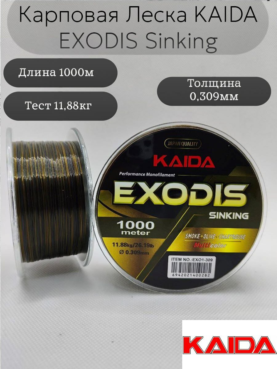 Купить Леска карповая Каида EXODIS 1000м 0,309мм 11,88кг
