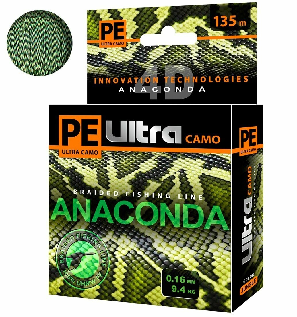 Купить Плетеный шнур для рыбалки AQUA PE Ultra ANACONDA CAMO Jungle 135m 0.16mm