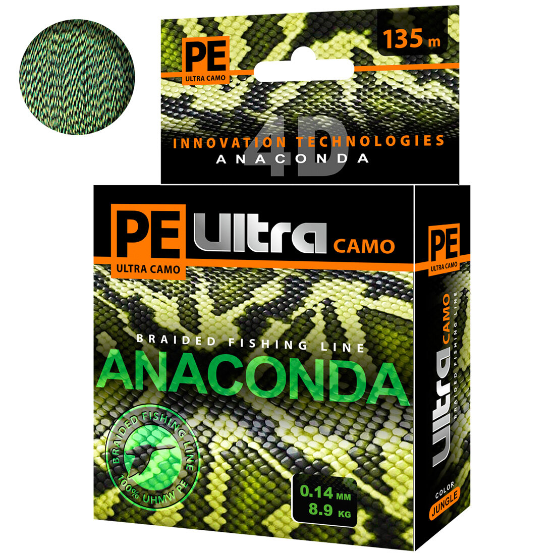 Купить Плетеный шнур AQUA PE Ultra ANACONDA CAMO Jungle 135м 0,14мм