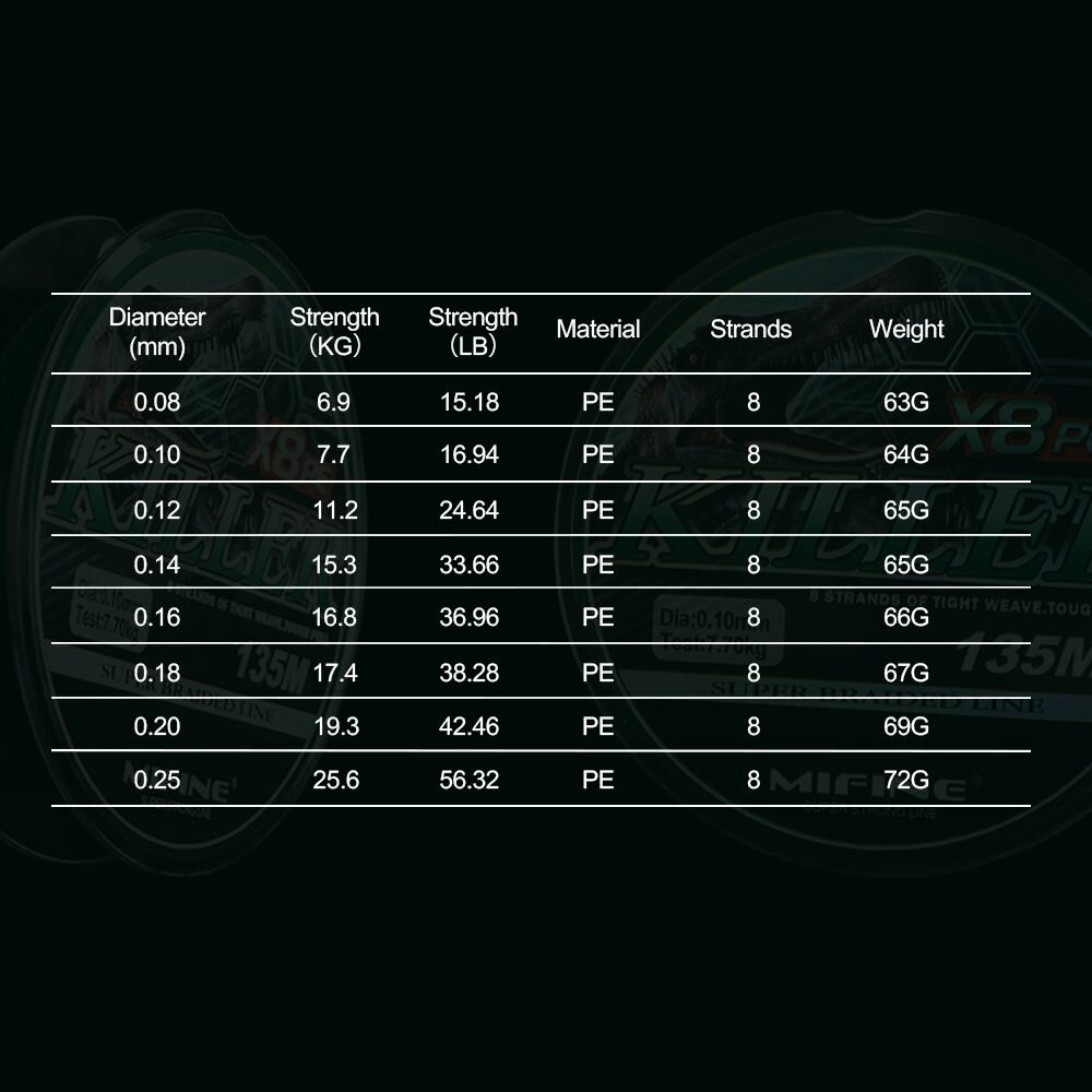 Плетеный шнур для рыбалки MIFINE KILLER X8PE (135м); (d - 0,18мм); (тест - 17,4кг) интересное: