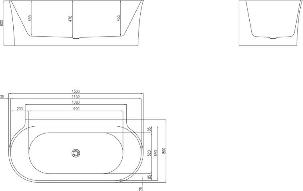 Пристенная, овальная акриловая ванна в комплекте со сливом-переливом BelBagno BB409-1500-800