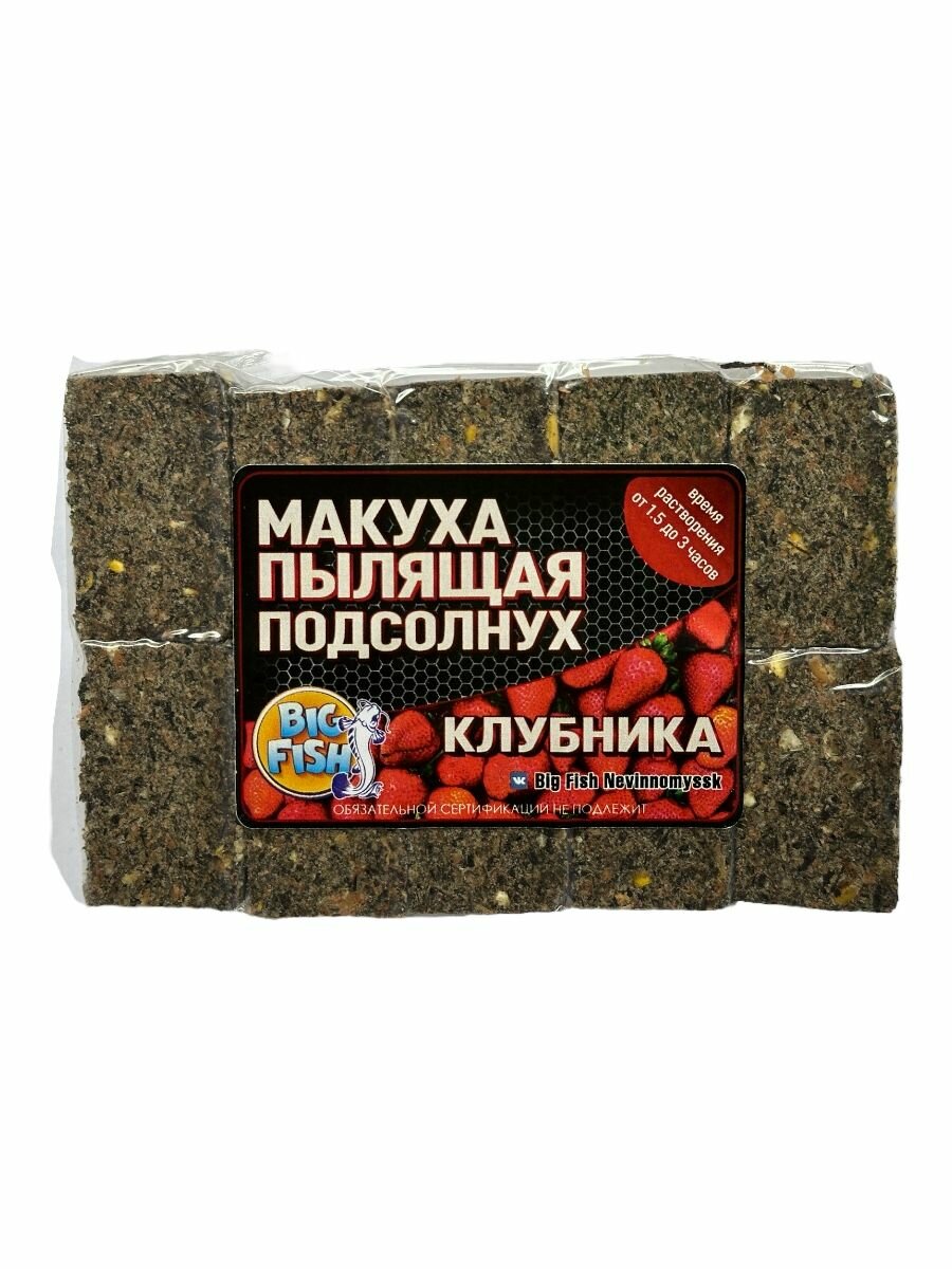 Купить Жмых пылящий подсолнечный, макуха, Big Fish, аромат - клубника