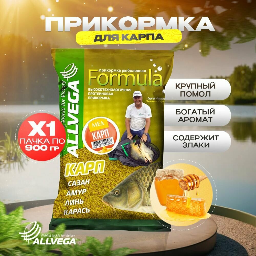 Прикормка для рыбалки ALLVEGA Formula Карп мед 1 пачка 0.9кг интересное: