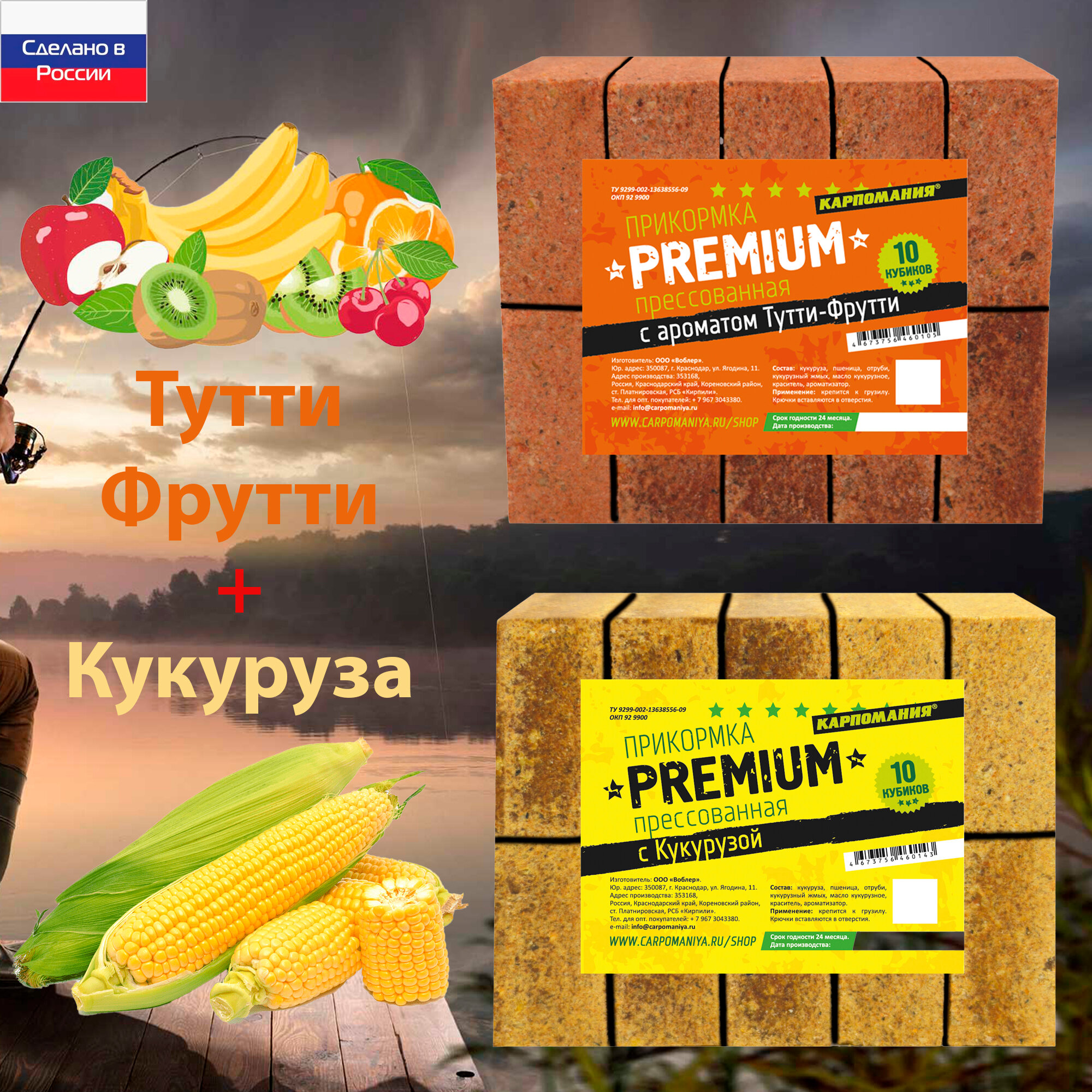Купить Набор 2шт Прикормка прессованная PREMIUM с ароматом Тутти-Фрутти+Кукуруза (20 куб)