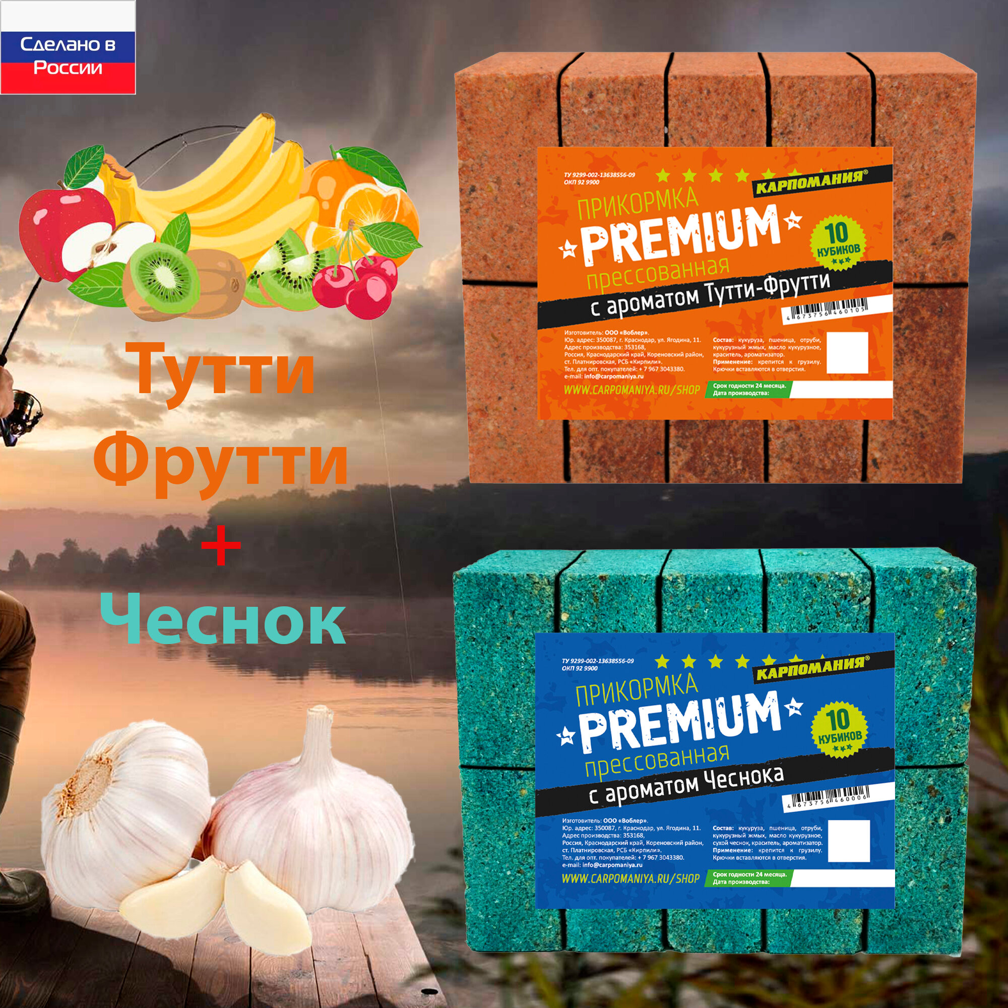 Купить Набор 2шт Прикормка прессованная PREMIUM с ароматом Тутти-Фрутти+Чеснок (20 куб)
