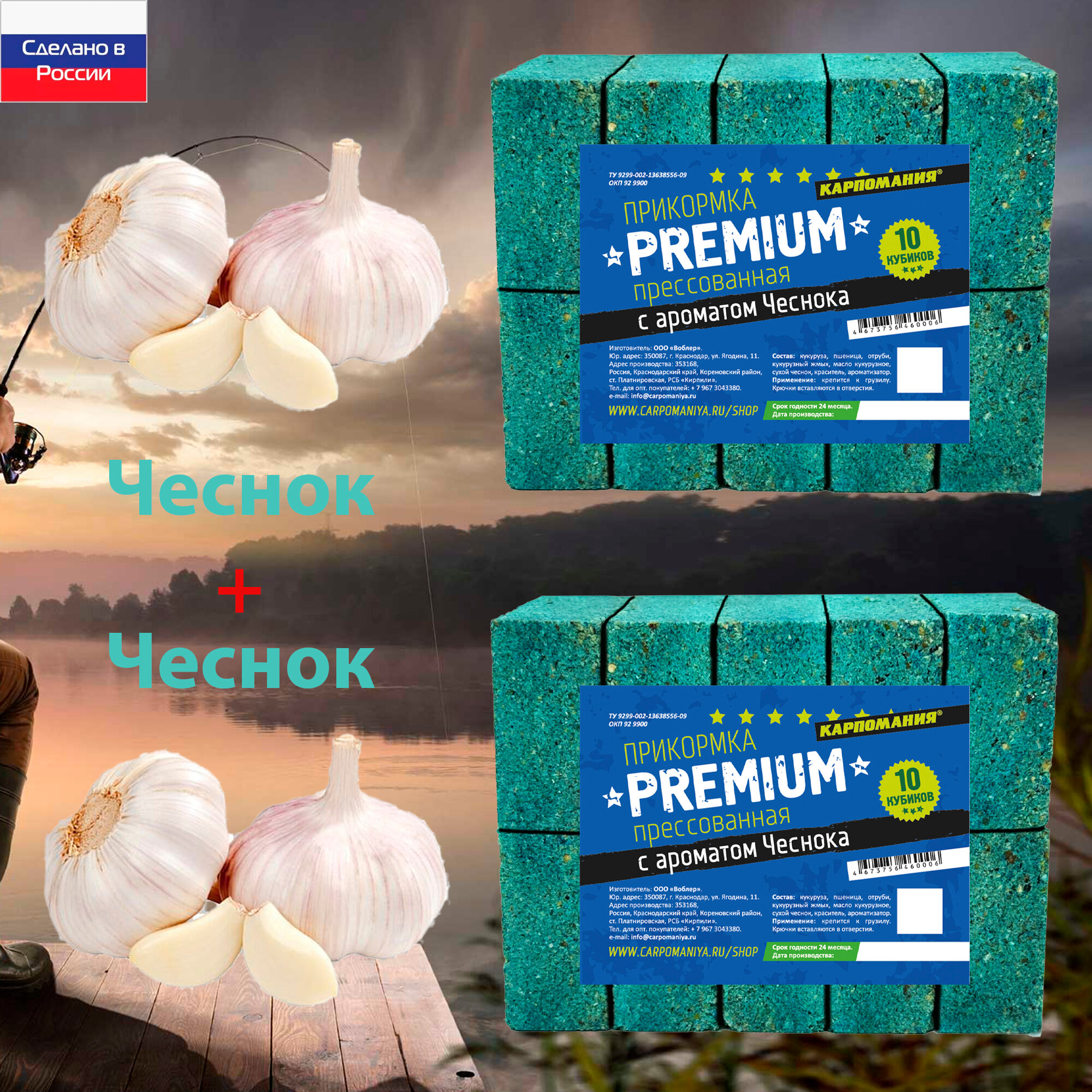 Купить Набор 2шт Прикормка прессованная PREMIUM с ароматом Чеснок+Чеснок (20 куб)
