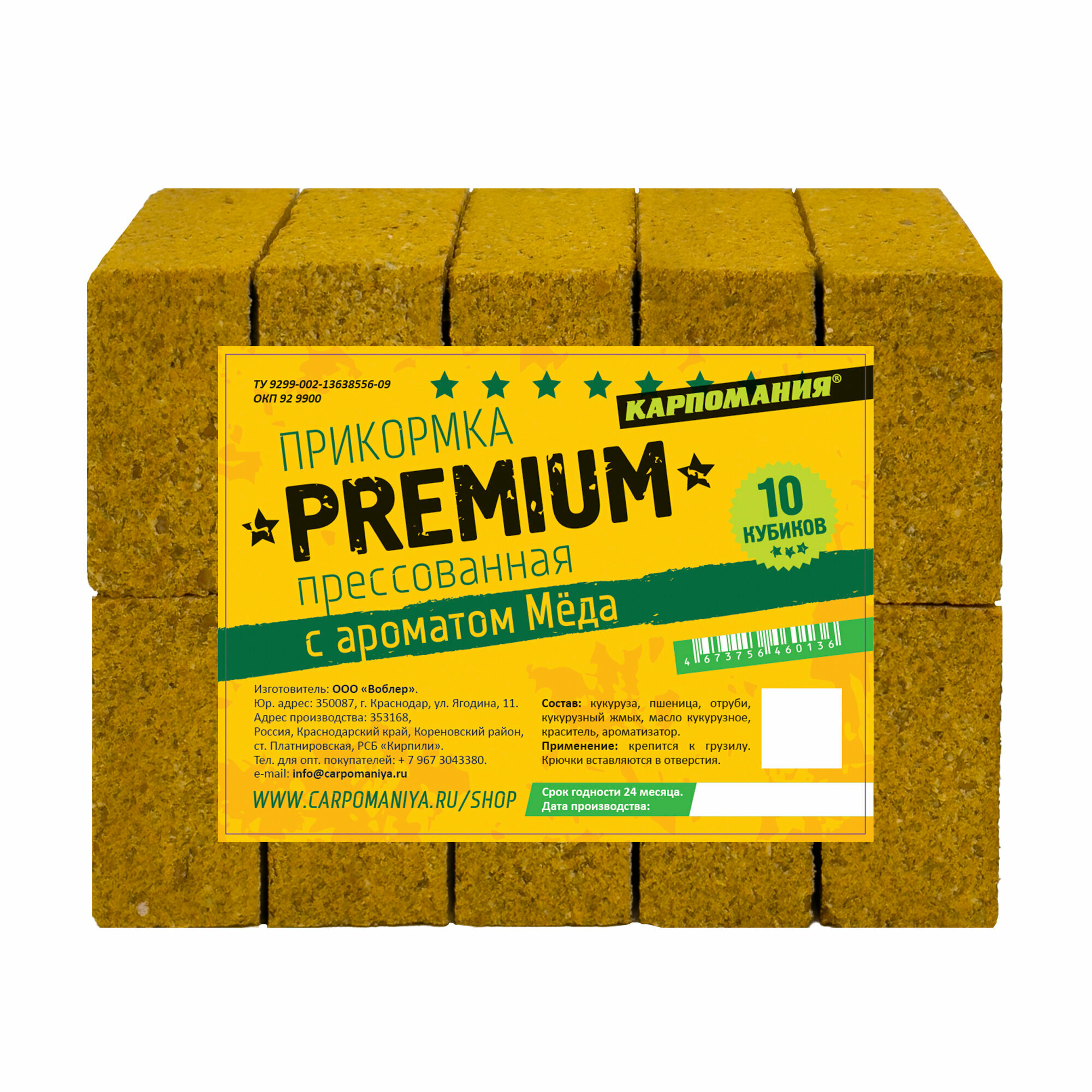 PREMIUM Прикормка прессованная желтая с ароматом мёда (кубики) интересное: