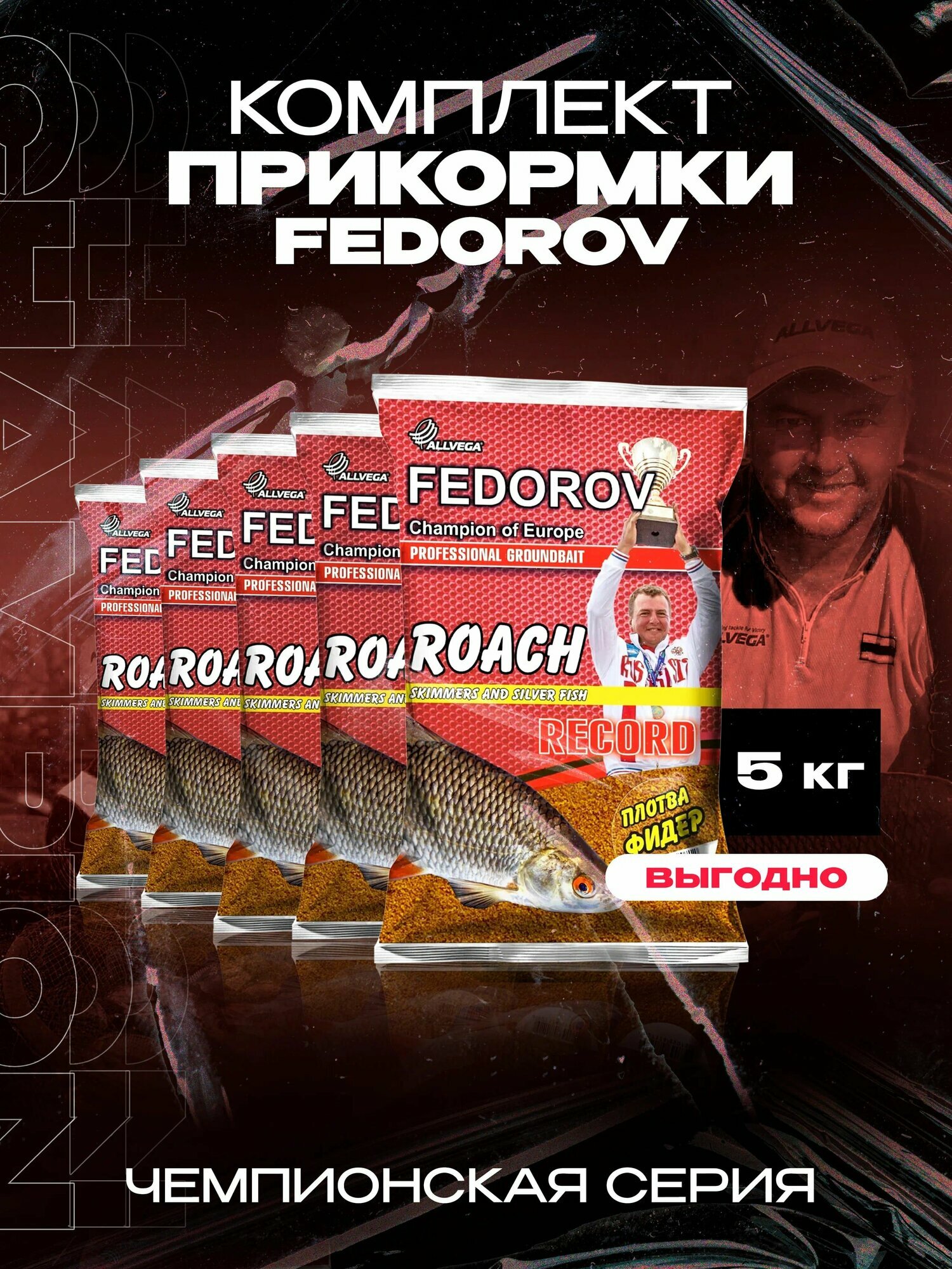 Купить Прикормка для рыбалки ALLVEGA Fedorov record плотва фидер 5 пакетов по 1 кг
