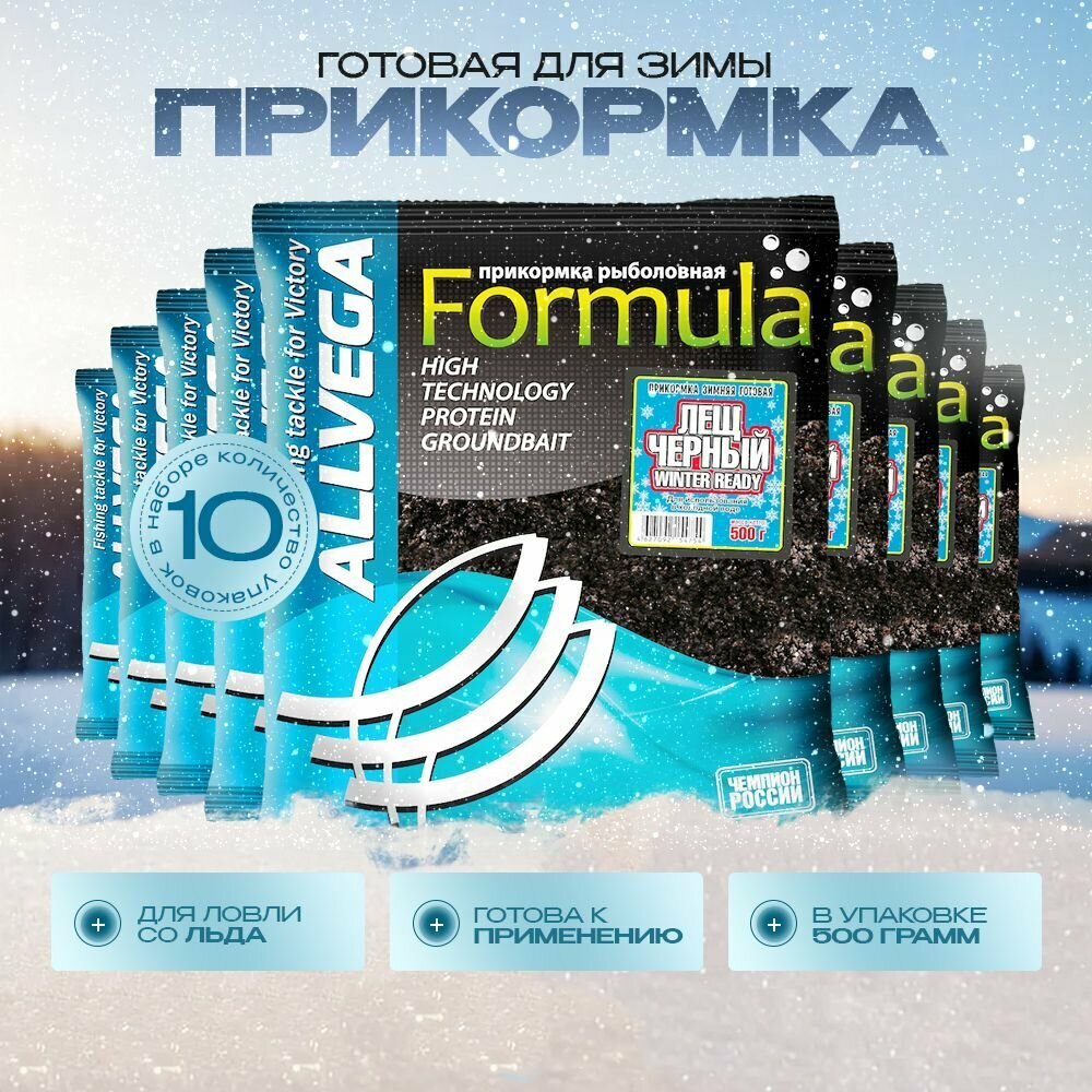Купить Прикормка для зимней рыбалки готовая ALLVEGA Formula Winter Ready черный лещ 10 штук по 0.5 кг