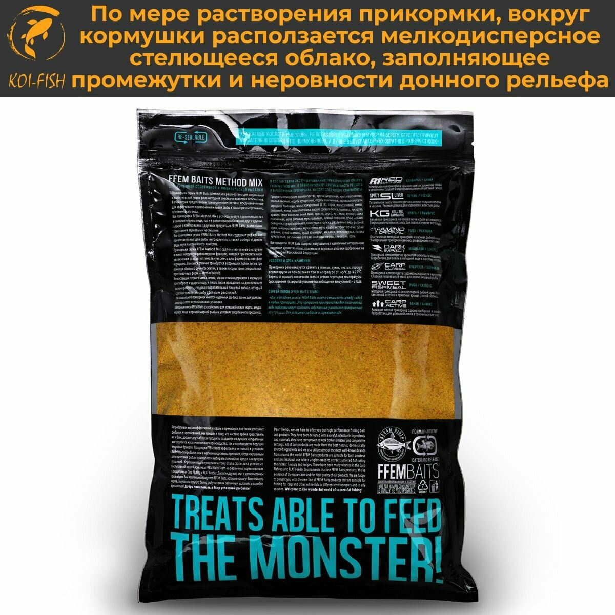 FFEM METHOD MIX Carp Active 1 кг (Банас и Ананас) Прикормка для ловли карпа / Метод Микс / Флэт фидер Flat Feeder, Zip-lock пакет